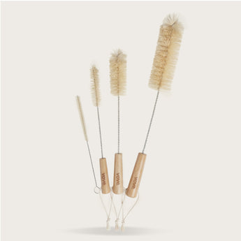 Meet the Bottle Brush Set that makes cleaning every vessel a breeze! Four perfectly-sized bamboo brushes with natural sisal bristles tackle everything from narrow-neck bottles to wide-mouth jars. Durable, beautiful, and designed to hang dry between uses—plus, FSC-certified materials.